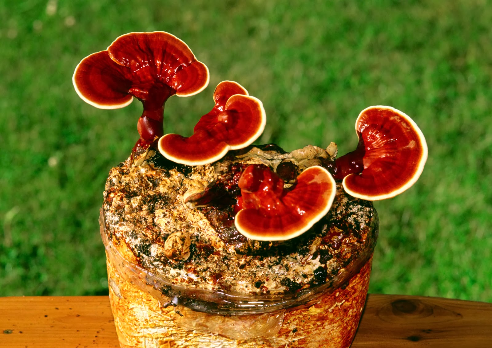 Reishi, or Lingzhi(supernatural) mushroom, is a red-to-brown-yellow, kidney-shaped capped fungus, and one of the oldest known medicinal mushrooms used in current medicine by both eastern and western cultures. It is a powerful adaptogen with anti- (oxidant/cancerous/radiant/viral) properties, and also boosts the immune system and cleanses the organs(liver/lungs/kidney/heart/stomach), due to its flurry of polysaccharides and terpenes. It also decreases platelet aggregation (blood cell bunching), lessens nausea/aches caused by chemotherapy, lowers blood pressure, cholesterol and blood sugar, reduces stress and prevents fatigue.